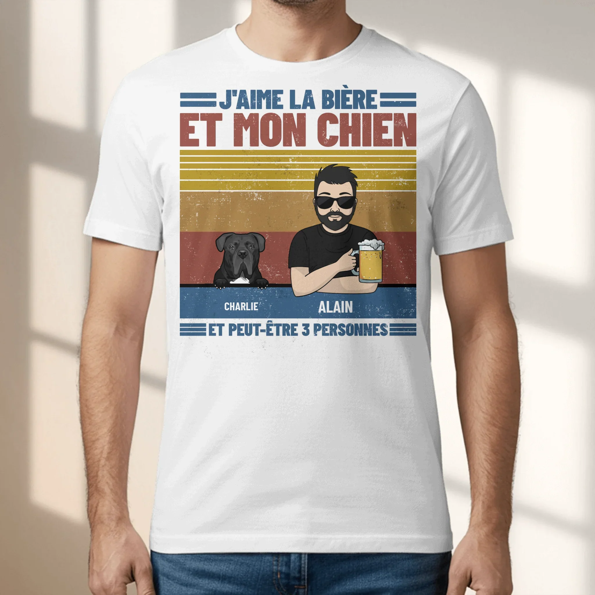 J'aime la bière et les animaux - T-Shirt personnalisé